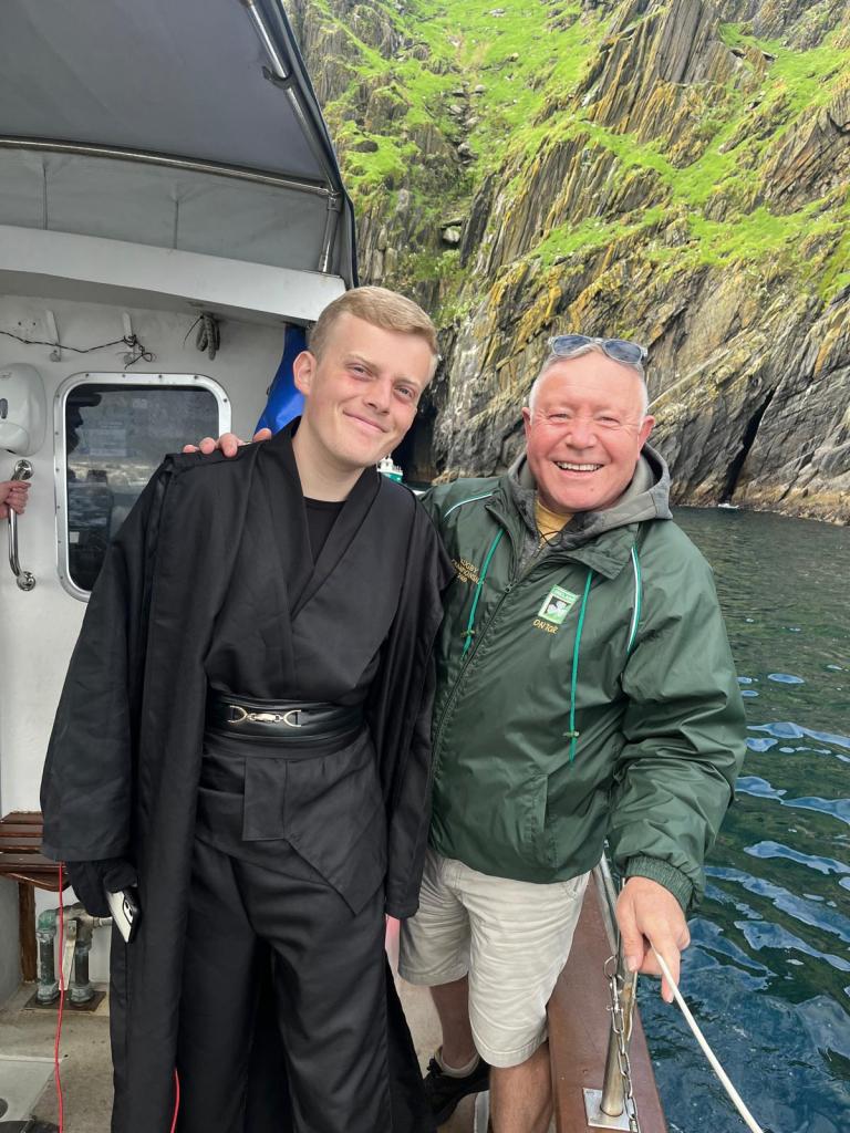 This was a bucket list trip, a once in a lifetime experience that will live long in the memory. I will compile a ‘YouTube’ video of my experience and post in a later blog. I met some amazing people on this short journey, including Felix from ‘Sweden’, an avid Star Wars Super Fan, who was appropriately attired in an elaborate ‘Luke Skywalker’ costume, truly fitting for a Super Fan. And our incredible guide for our trip, Ken Casey of Casey’s Skellig Island Tours. If you get even the remotest chance of taking this trip, go for it. May the force be with you.