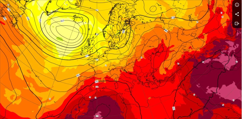 Today’s, 18th. July 2024, heat map of Europe and Ireland remains in the relitively cooler side of the Jet Stream (17-19 degrees). As opposed to temperatures of 32 to 42 degrees across the rest of Europe. Now, I’m as much in favour of a sunny day as anyone, but I’m VERY greatful, I’m not melting and am getting relitively good night’s sleep. August will be just smashing, especially as the kids just return to school. 😦