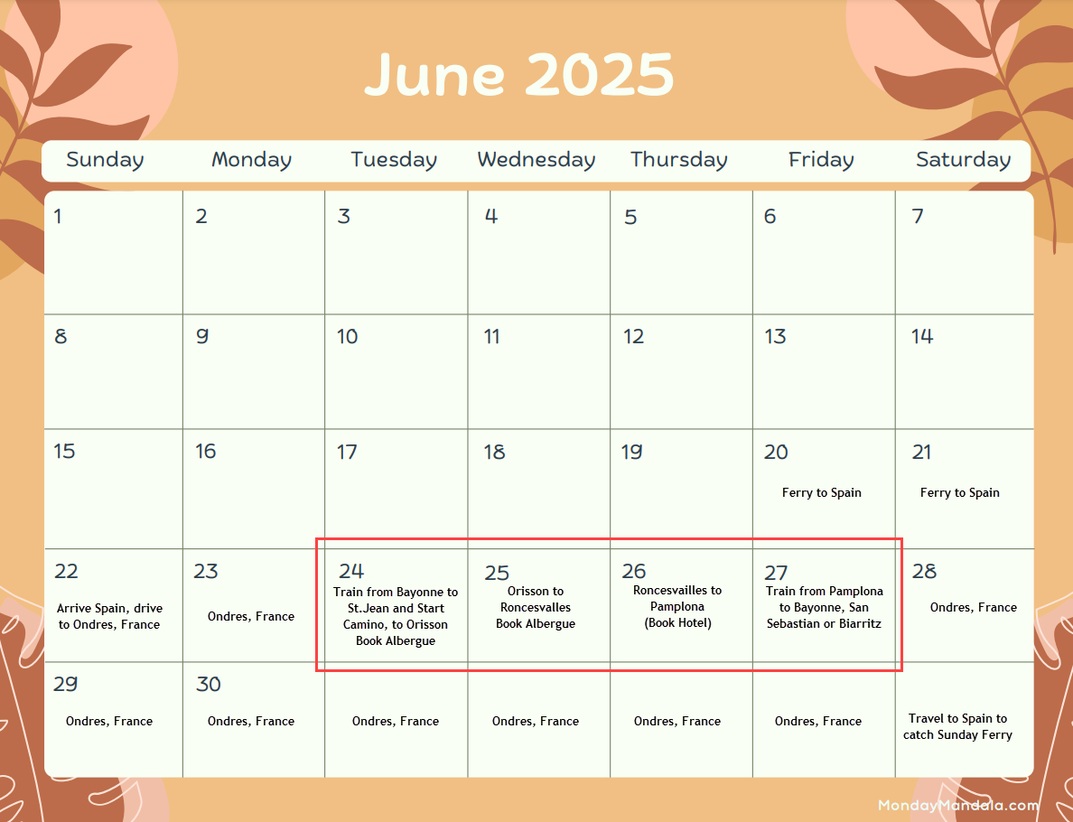 Lastly, June 2025 is my aim to do a small bit of the Camino Santiago de Compostela. I’m planning on doing the (a difficult enough trek) St. Jean Pied de Porte to Pamplona, Camino Francés. In training ATM.