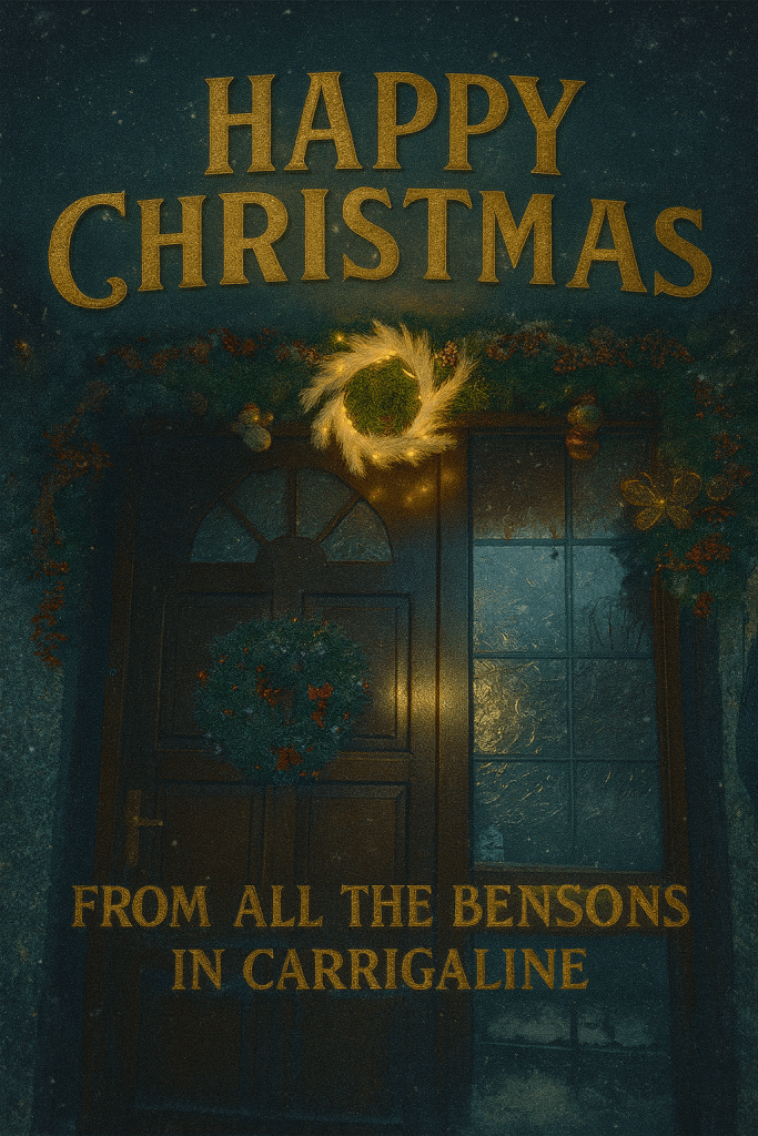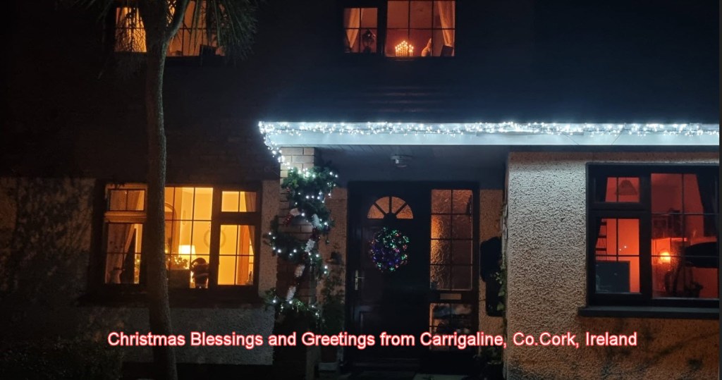 Suffice to say, I’ve made way too many attempts to get a ‘Blog’ completed since May of this year. I’ve just deleted a number of attempts from my drafts folder (May, June, August and September) Now, come hell or high water, this year-end, a seasonal greeting will be published. 2025 was full of so much awfulness, Gaza, Trump, Ukraine, it was impossible (for me) to write a blog without OMG, the rage and the last thing I wanted to spread was a further rant on a blog. So, from us all here in rain soaked, frigidly cold, but getting a bit Christmassy, Carrigaline. My deepest best wishes for a beautiful, contented and loving Christmas