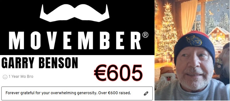 No “Movember” this 2025, growing facial hair just does not do it for me, looking in the mirror each morning screaming, “Sweet effing Jesus“. However I am doing the 12 Dips of Christmas. So if you have a fiver (€5) to spare, and honestly that’s plenty, Pieta would really appreciate the support. If you have your own charities then ABSOLUTELY no worries. Please support your local fundraising efforts. In actual fact, I’ve seen so many down in Fountainstown, swimming, I’ll wager I’m not the first to approach you for this cause. https://www.justgiving.com/page/garry-benson-1?utm_medium=FA&utm_source=CL